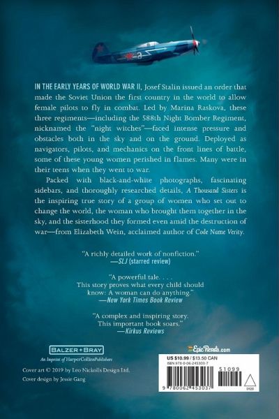 Excellence in Nonfiction for Young Adults Finalist! The gripping true story of the only women to fly in combat in World War II?from Elizabeth Wein, award-winning author of Code Name Verity In the early years of World War II, Josef Stalin issued an order that made the Soviet Union the first country in the world to allow female pilots to fly in combat. Led by Marina Raskova, these three regiments, including the 588th Night Bomber Regiment?nicknamed the ?night witches??faced intense pressure and obstacles both in the sky and on the ground. Some of these young women perished in flames. Many of them were in their teens when they went to war. This is the story of Raskova's three regiments, women who enlisted and were deployed on the front lines of battle as navigators, pilots, and mechanics. It is the story of a thousand young women who wanted to take flight to defend their country, and the woman who brought them together in the sky. Packed with black-and-white photographs, fascinating sidebars, and thoroughly researched details, A Thousand Sisters is the inspiring true story of a group of women who set out to change the world, and the sisterhood they formed even amid the destruction of war.