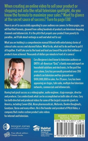 You can sell your product at thousands of dollars per minute in an online video or retail television spotlight. Do you know the formula to maximize your sales? Want to glance at the secret sauce of success? Turn to page 107! There is an art to successfully appealing to your audience on camera. There is a way to keep the watcher watching! In these pages, you will find that formula, gleaned from selling hundreds of products on television shopping channels and infomercials. It is the pitch that propels your product from poverty to paradise (we'll talk about verbiage as well and what not to say!). What you are holding is a comprehensive manual littered with entertaining stories of colossal sales success and abysmal failure. You will see what to do, what not to do and how to put it all together. This book will take you by the hand and lead you toward the prize that millions of products have achieved--thousands of dollars per minute in front of a camera!