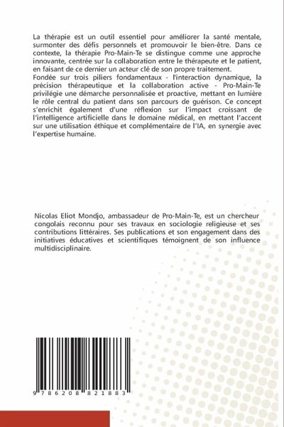 La thérapie est un outil essentiel pour améliorer la santé mentale, surmonter des défis personnels et promouvoir le bien-être. Dans ce contexte, la thérapie Pro-Main-Te se distingue comme une approche innovante, centrée sur la collaboration entre le thérapeute et le patient, en faisant de ce dernier un acteur clé de son propre traitement.Fondée sur trois piliers fondamentaux - l'interaction dynamique, la précision thérapeutique et la collaboration active - Pro-Main-Te privilégie une démarche personnalisée et proactive, mettant en lumière le rôle central du patient dans son parcours de guérison. Ce concept s'enrichit également d'une réflexion sur l'impact croissant de l'intelligence artificielle dans le domaine médical, en mettant l'accent sur une utilisation éthique et complémentaire de l'IA, en synergie avec l'expertise humaine.