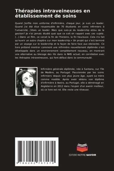 Quand j'enfile mon uniforme d'infirmière, chaque jour, je suis un leader. Quand j'ai été élue responsable de 70 étudiants en soins infirmiers à l'université, j'étais un leader. Mais que sais-je du leadership et/ou de la gestion? Je n'ai jamais étudié quoi que ce soit en rapport avec ces sujets. (...) Dans un film, ce serait la fin de l'histoire, la fin heureuse. Cela n'a fait qu'ouvrir un autre chapitre sur mon leadership.» Un projet qui s'est terminé par un voyage sur le leadership et la façon de faire face aux obstacles. Ce livre prétend montrer comment une infirmière nouvellement diplômée s'est développée dans un environnement complètement nouveau, en montrant une alternative au blocage des lits dans le NHS actuel, en corrélation avec les thérapies intraveineuses, qui font défaut dans la communauté.