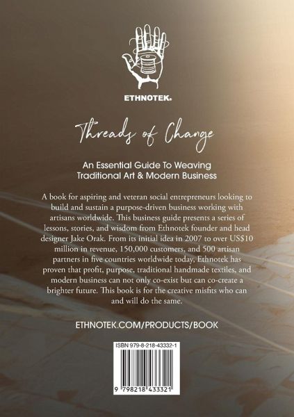 With over $10 million in revenue, 150,000 customers, and 500 artisan partners in 5 countries worldwide today, Ethnotek has proven that profit and purpose can co-exist. This book is for the creative misfits who can and will do the same.