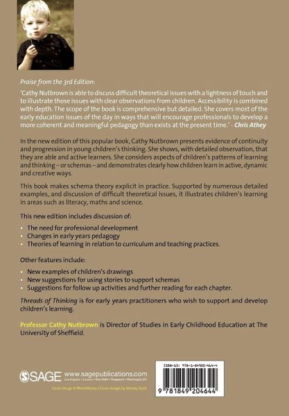 In her new edition of this popular book, Cathy Nutbrown presents evidence of continuity and progression in young children's thinking. She shows, with detailed observation, that they are able and active learners. She considers aspects of children's patterns of learning and thinking - or schemas - and demonstrates clearly how children learn in an active, dynamic and creative way.