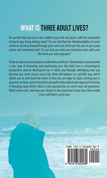Do you feel that you are in the middle of your life and stuck, with the excitement of day-to-day living ebbing away? Do you feel that the indestructibility of youth which at one time flowed through your veins has dried up? Are you in your early career and somewhat lost? Do you feel you wish you had done more with your life when you were younger? These are all common questions, reflections and fears. Three Adults Lives presents a new way of reviewing and positioning your life, both from a chronological perspective and an ideological one. It walks you through identifying how you became you, what causes you to be, think and behave in a specific way, and it allows you to peel back the onion of who you are layer by layer, inviting you to question, to think, and to transform yourself in this radical new approach to living. A liberating read which offers a new perspective on some very old questions. What comes next, and how you choose to live each one of your own Three Adult Lives, well that is up to you.