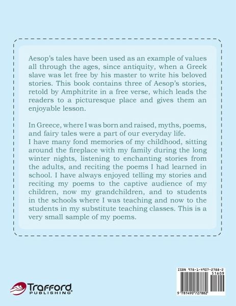 Aesop's tales have been used as an example of values all through the ages, since antiquity, when a Greek slave was let free by his master to write his beloved stories. This book contains three of Aesop's stories, retold by Amphitrite in a free verse, which leads the readers to a picturesque place and gives them an enjoyable lesson.