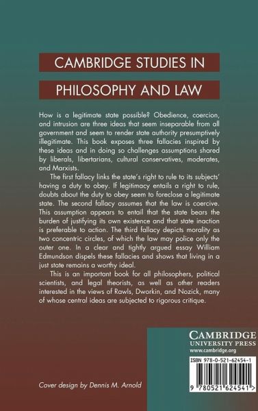 How is a legitimate state possible? Obedience, coercion and intrusion are three ideas that seem inseparable from all government and seem to render state authority presumptively illegitimate. This book exposes three fallacies inspired by these ideas and in doing so challenges assumptions shared by liberals, libertarians, cultural conservatives, moderates and Marxists. In three clear and tightly argued essays William Edmundson dispels these fallacies and shows that living in a just state remains a worthy ideal. This is an important book for all philosophers, political scientists and legal theorists as well as other readers interested in the views of Rawls, Dworkin and Nozick, many of whose central ideas are subjected to rigorous critique.