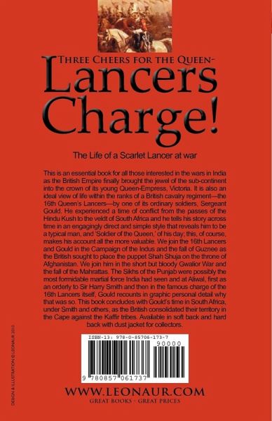 The Life of a Scarlet Lancer at war This is an essential book for all those interested in the wars in India as the British Empire finally brought the jewel of the sub-continent into the crown of its young Queen-Empress, Victoria. It is also an ideal view of life within the ranks of a British cavalry regiment-the 16th Queen's Lancers-by one of its ordinary soldiers, Sergeant Gould. He experienced a time of conflict from the passes of the Hindu Kush to the veldt of South Africa and he tells his story across time in an engagingly direct and simple style that reveals him to be a typical man, and 'Soldier of the Queen,' of his day; this, of course, makes his account all the more valuable. We join the 16th Lancers and Gould in the Campaign of the Indus and the fall of Guznee as the British sought to place the puppet Shah Shuja on the throne of Afghanistan. We join him in the short but bloody Gwalior War and the fall of the Mahrattas. The Sikhs of the Punjab were possibly the most formidable martial force India had seen and at Aliwal, first as an orderly to Sir Harry Smith and then in the famous charge of the 16th Lancers itself, Gould recounts in graphic personal detail why that was so. This book concludes with Gould's time in South Africa, under Smith and others, as the British consolidated their territory in the Cape against the Kaffir tribes. Available in soft back and hard back with dust jacket for collectors.