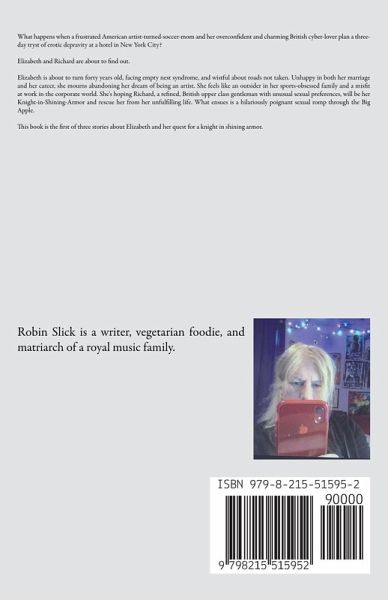 What happens when a frustrated American artist-turned-soccer-mom and her overconfident and charming British cyber-lover plan a three-day tryst of erotic depravity at a hotel in New York City? Elizabeth and Richard are about to find out. Elizabeth is about to turn forty years old, facing empty nest syndrome, and wistful about roads not taken. Unhappy in both her marriage and her career, she mourns abandoning her dream of being an artist. She feels like an outsider in her sports-obsessed family and a misfit at work in the corporate world. She's hoping Richard, a refined, British upper class gentleman with unusual sexual preferences, will be her Knight-in-Shining-Armor and rescue her from her unfulfilling life. What ensues is a hilariously poignant sexual romp through the Big Apple. This book is the first of three stories about Elizabeth and her quest for a knight in shining armor.