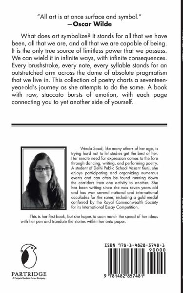 " ""All art is at once surface and symbol."" -Oscar Wilde What does art symbolize? It stands for all that we have been, all that we are, and all that we are capable of being. It is the only true source of limitless power that we possess. We can wield it in infinite ways, with infinite consequences. Every brushstroke, every note, every syllable stands for an outstretched arm across the dome of absolute pragmatism that we live in. This collection of poetry charts a seventeen-year-old's journey as she attempts to do the same. A book with raw, staccato bursts of emotion, with each page connecting you to yet another side of yourself."