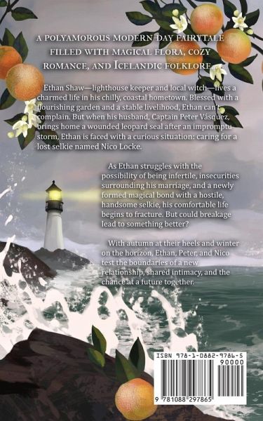 A polyamorous modern-day fairytale filled with magical flora, cozy romance, and Icelandic folklore... Ethan Shaw-lighthouse keeper and local witch-lives a charmed life in his chilly, coastal hometown. Blessed with a flourishing garden and a stable livelihood, Ethan can't complain. But when his husband, Captain Peter Vásquez, brings home a wounded leopard seal after an impromptu storm, Ethan is faced with a curious situation: caring for a lost selkie named Nico Locke. As Ethan struggles with the possibility of being infertile, insecurities surrounding his marriage, and a newly formed magical bond with a hostile, handsome selkie, his comfortable life begins to fracture. But could breakage lead to something better? With autumn at their heels and winter on the horizon, Ethan, Peter, and Nico test the boundaries of a new relationship, shared intimacy, and the chance at a future together.