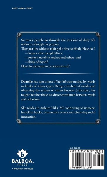 So many people go through the motions of daily life without a thought or purpose. They just live without taking the time to think, How do I —impact other people’s lives, —present myself to and around others, and —think of myself. How do you want to be remembered?