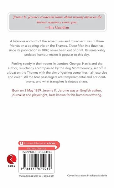 Jerome K. Jerome's Three Men in a Boat (To say nothing of the dog), published in 1889, is the hilarious account of three men, a dog and their boating holiday on the Thames. Originally intended to be a serious travel guide, the book is now known for its compelling humour and gentle mockery of English society in the 1880s.