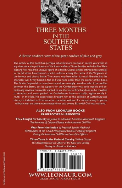 A British soldier's view of the great conflict of blue and grey The author of this book has, perhaps, achieved more renown in recent years than at any time since the publication of his literary efforts. Those familiar with the film, 'Gettysburg' will recall the unusual figure of a British Guards officer attired (inaccurately) in his full dress Guardsman's scarlet uniform among the ranks of the Virginians at the famous and pivotal battle. The cinema may have taken its usual liberties, but the character was firmly based in fact and was none other than the author of this book. The British Empire felt no need to come down strongly on either side of the conflict between the States, but its support for the Confederacy was both implicit and occasionally obvious. Fremantle wanted to see the war at first hand and so he travelled to America and accompanied the Confederate forces-actually unglamorously in mufti-in the field. His experiences brought him to the collision of Gettysburg and history is indebted to Fremantle for the observations of a comparatively impartial military man on these monumental times and events. Essential Civil war material.