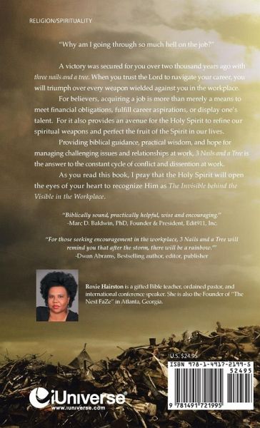 "Why am I going through so much hell on the job?" A victory was secured for you over two thousand years ago with three nails and a tree. When you trust the Lord to navigate your career, you will triumph over every weapon wielded against you in the workplace. For believers, acquiring a job is more than merely a means to meet financial obligations, fulfi l career aspirations, or display one's talent. For it also provides an avenue for the Holy Spirit to refine our spiritual weapons and perfect the fruit of the Spirit in our lives. Providing biblical guidance, practical wisdom, and hope for managing challenging issues and relationships at work, 3 Nails and a Tree is the answer to the constant cycle of conflict and dissention at work. As you read this book, I pray that the Holy Spirit will open the eyes of your heart to recognize Him as The Invisible behind the Visible in the Workplace. "Biblically sound, practically helpful, wise and encouraging." -Marc D. Baldwin, PhD, Founder & President, Edit911, Inc. "For those seeking encouragement in the workplace, 3 Nails and a Tree will remind you that aft er the storm, there will be a rainbow.'" -Dwan Abrams, Bestselling author, editor, publisher