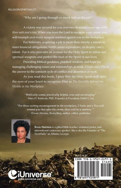 "Why am I going through so much hell on the job?" A victory was secured for you over two thousand years ago with three nails and a tree. When you trust the Lord to navigate your career, you will triumph over every weapon wielded against you in the workplace. For believers, acquiring a job is more than merely a means to meet financial obligations, fulfi l career aspirations, or display one's talent. For it also provides an avenue for the Holy Spirit to refine our spiritual weapons and perfect the fruit of the Spirit in our lives. Providing biblical guidance, practical wisdom, and hope for managing challenging issues and relationships at work, 3 Nails and a Tree is the answer to the constant cycle of conflict and dissention at work. As you read this book, I pray that the Holy Spirit will open the eyes of your heart to recognize Him as The Invisible behind the Visible in the Workplace. "Biblically sound, practically helpful, wise and encouraging." -Marc D. Baldwin, PhD, Founder & President, Edit911, Inc. "For those seeking encouragement in the workplace, 3 Nails and a Tree will remind you that aft er the storm, there will be a rainbow.'" -Dwan Abrams, Bestselling author, editor, publisher