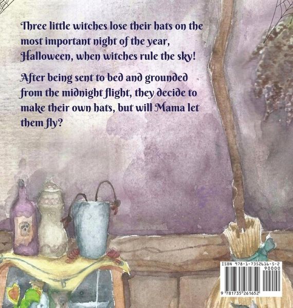 Three little witches lose their hats on one of the most important nights of the year, Halloween. Their frustrated mama sends them to bed early. Without their hats she will not let them fly in the annual midnight flight. The little witches refuse to give up and decide to make their own hats, but will their silly creations be enough for mama to change her mind?