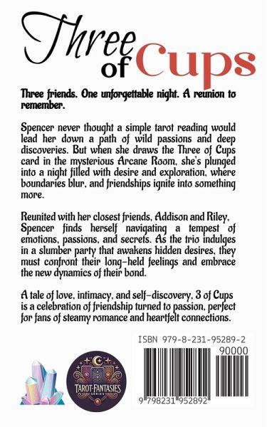 Three friends. One unforgettable night. A reunion to remember. Spencer never thought a simple tarot reading would lead her down a path of wild passions and deep discoveries. But when she draws the Three of Cups card in the mysterious Arcane Room, she's plunged into a night filled with desire and exploration, where boundaries blur, and friendships ignite into something more. Reunited with her closest friends, Addison and Riley, Spencer finds herself navigating a tempest of emotions, passions, and secrets. As the trio indulges in a slumber party that awakens hidden desires, they must confront their long-held feelings and embrace the new dynamics of their bond. A tale of love, intimacy, and self-discovery, 3 of Cups is a celebration of friendship turned to passion, perfect for fans of steamy romance and heartfelt connections.