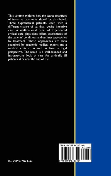 This volume explores how the scarce resources of intensive care units should be distributed. Three hypothetical patients, each with a different chance of survival, desire intensive care. A multinational panel of experienced critical care physicians offers assessments of the patients' conditions and outlines approaches to treatment. These approaches are then examined by academic medical experts and a medical ethicist, as well as from a legal perspective. The result is a well-rounded and introspective look at care for critically ill patients at or near the end of life.