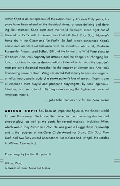 Arthur Kopit has been one of our most imaginative, acclaimed, and produced playwrights. Now his three classics plays are available in one volume: Oh Dad, Poor Dad, Mamma's Hung You In The Closet And I'm Feelin' So Sad, Indians, and Wings. "Kopit is one of America's most playful and prophetic playwrights, by turns ingenious, hilarious and sensational. His plays are among the high-water marks of American theatre."--The New Yorker