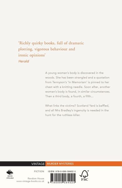 A young woman's body is discovered in the woods. She has been strangled and a quotation from Tennyson's 'In Memoriam' is pinned to her chest with a knitting needle. Soon after, another woman's body is found, in similar circumstances. Then a third body, a fourth, a fifth... What links the victims?