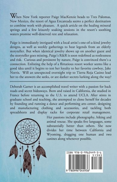 When New York reporter Paige MacKenzie heads to Tres Palomas, New Mexico, the resort of Agua Encantada seems a perfect destination to combine work with pleasure. A quick article on the healing mineral springs and a few leisurely soaking sessions in the resort's soothing waters promise well-deserved rest and relaxation. Paige is immediately intrigued with a local artist's one-of-a-kind jewelry designs, as well as weekly gatherings to hear legends from an elderly storyteller. But when identical jewelry shows up on another guest and the storyteller goes missing, Paige's R&R is soon redefined as restlessness and risk. Curious and persistent by nature, Paige is convinced there's a connection. Enlisting the help of a flirtatious resort worker seems like a good idea until it begins to test her loyalty to her favorite cowboy, Jake Norris. Will an unexpected overnight trip to Tierra Roja Casino lead her to the answers she seeks, or are darker secrets lurking along the way?