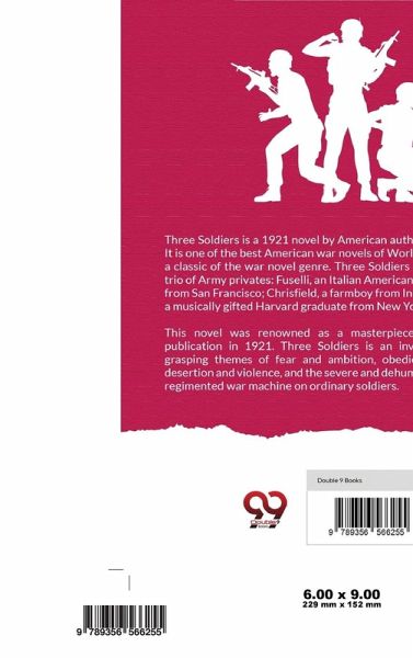 Three Soldiers is a 1921 novel by American author John Dos Passos. It is one of the best American war novels of World War I and remains a classic of the war novel genre. Three Soldiers shows the lives of a trio of Army privates: Fuselli, an Italian American store administrator from San Francisco; Chrisfield, a farmboy from Indiana; and Andrews, a musically gifted Harvard graduate from New York. This novel was renowned as a masterpiece upon its original publication in 1921. Three Soldiers is an investigation into the grasping themes of fear and ambition, obedience and rebellion, desertion and violence, and the severe and dehumanising impacts of a regimented war machine on ordinary soldiers.
