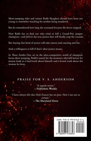 Saving a champion show jumper from a burning horse trailer gives young rider-trainer Robb Slaughter one job: find out who tied that horse in that trailer and make them pay. For Robb, avenging that horse means atonement. Sure, he was just a kid when he left his mother screaming while her lover killed her, but that doesn't mean he ever quit hearing those screams. It's the horses who've saved him from the torrent of unanswered cries inside his head. Clearing the big jumps on horses he cares about has given him a hard-won mental peace. He has built a good life for himself as a professional show-jumping rider, on his way to Grand-Prix stardom . . . Until that fire. You were crazy to jump into that trailer to save that horse, everyone tells Robb. But for Robb saving the horse like he did is just the beginning. Let the police solve it, everyone says. But Robb knows no cop will ever deliver the right kind of justice. Only somebody brave enough and driven enough can hunt down the killers and exact true justice. Somebody with a visceral need to right wrongs and find peace from his own torment. Somebody like Robb. With the help of a sharp-witted female reporter, Robb unravels the plot that put that horse in that trailer. He's ready to do whatever he has to-until he learns that one of the people involved is a troubled young woman he has always dreamed his love could rescue. But what if saving her asks a lot more of him than saving the horse? Set against the daily background of a hunter-jumper show barn in rigorous international competition, Three Strides Out pits a young rider's life against fraud, money-laundering, blackmail, and murder. Like a Grand Prix class that asks horses to jump fences they can't see over, Robb's quest to bring killers to justice demands an ultimate commitment-and an ultimate sacrifice.