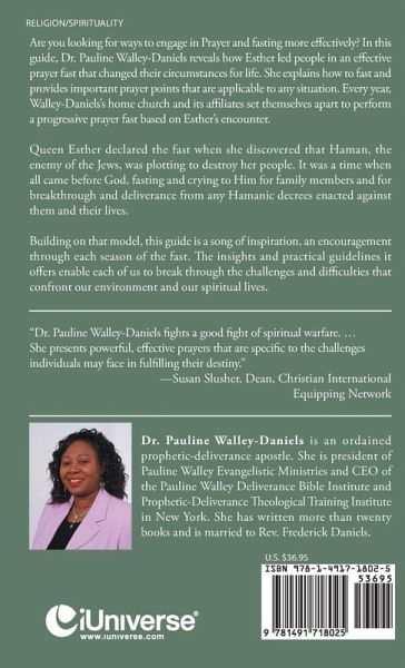 Are you looking for ways to engage in Prayer and fasting more effectively? In this guide, Dr. Pauline Walley-Daniels reveals how Esther led people in an effective prayer fast that changed their circumstances for life. She explains how to fast and provides important prayer points that are applicable to any situation. Every year, Walley-Daniels's home church and its affiliates set themselves apart to perform a progressive prayer fast based on Esther's encounter. Queen Esther declared the fast when she discovered that Haman, the enemy of the Jews, was plotting to destroy her people. It was a time when all came before God, fasting and crying to Him for family members and for breakthrough and deliverance from any Hamanic decrees enacted against them and their lives. Building on that model, this guide is a song of inspiration, an encouragement through each season of the fast. The insights and practical guidelines it offers enable each of us to break through the challenges and difficulties that confront our environment and our spiritual lives. "Dr. Pauline Walley-Daniels fights a good fight of spiritual warfare. ... She presents powerful, effective prayers that are specific to the challenges individuals may face in fulfilling their destiny." -Susan Slusher, Dean, Christian International Equipping Network