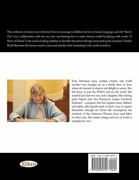 This collection of stories was written by Erna to encourage in children the love of nature, language, and self. "Steve's Zoo" was a collaboration with her son, who was learning how to create fantasy worlds by playing with words. "A Show of Hands" is the result of asking children to describe themselves through structured poetic invention."Sasha's Birds"illustrates the human need to name and classify while luxuriating in the world around us.