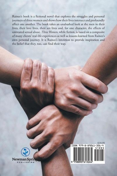 Rainee's book is a fictional novel that explores the struggles and personal journeys of three women and shows how their lives intersect and profoundly affect one another. The book takes an unabashed look at the men in their lives, their love lives, their sex lives and, for one character, the effects of untreated sexual abuse. Three Women, while fiction, is based on a composite of many clients' real-life experiences as well as lessons learned from Rainee's own personal journey. It is Rainee's intention to provide inspiration and the belief that they, too, can find their way.
