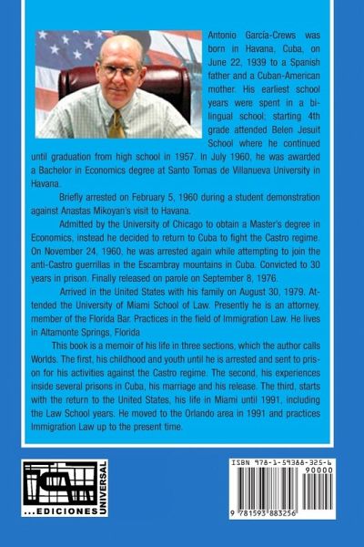 Antonio Garcia-Crews was born in Havana, Cuba, on June 22, 1939 to a Spanish father and a Cuban-American mother. His earliest school years were spent in a bilingual school; starting 4th grade attended Belen Jesuit School where he continued until graduation from high school in 1957. In July 1960, he was awarded a Bachelor in Economics degree at Santo Tomas de Villanueva University in Havana. Briefly arrested on February 5, 1960 during a student demonstration against Anastas Mikoyan's visit to Havana. Admitted by the University of Chicago to obtain a Master's degree in Economics, instead he decided to return to Cuba to fight the Castro regime. On November 24, 1960, he was arrested again while attempting to join the anti-Castro guerrillas in the Escambray mountains in Cuba. Convicted to 30 years in prison. Finally released on parole on September 8, 1976. Arrived in the United States with his family on August 30, 1979. Attended the University of Miami School of Law. Presently he is an attorney, member of the Florida Bar. Practices in the field of Immigration Law. He lives in Altamonte Springs, Florida This book is a memoir of his life in three sections, which the author calls Worlds. The first, his childhood and youth until he is arrested and sent to prison for his activities against the Castro regime. The second, his experiences inside several prisons in Cuba, his marriage and his release. The third, starts with the return to the United States, his life in Miami until 1991, including the Law School years. He moved to the Orlando area in 1991 and practices Immigration Law up to the present time.