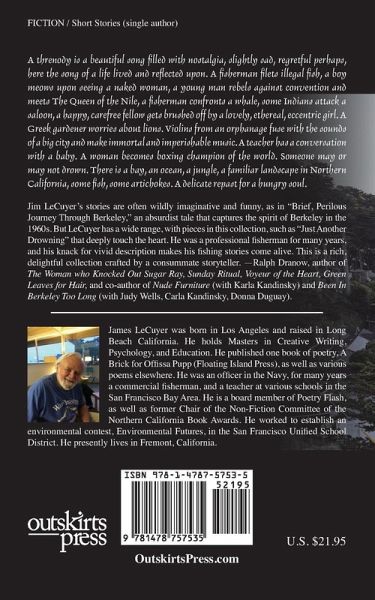 Threnody for Sturgeon and Selected Stories A poet confronts a whale, a teacher has an in-depth conversation with a baby, a young woman becomes boxing champion of the world and gives her prize away, someone may or may not drown. Set along the ocean, in the jungle, and in Berkeley, California, these are stories of misguided adventures at sea, childhood, and loss. James M. LeCuyer’s collection of short fiction offers a Kafkaesque twist on reality, dipping dreamlike nostalgia in the absurd. Enriched with details about pre-computer and pre-smartphone life, Threnody for Sturgeon and Selected Stories will delight anyone who came of age in the 1960s and 1970s. But everyone will be drawn in by the intelligence, irony, and wild humor of these stories.