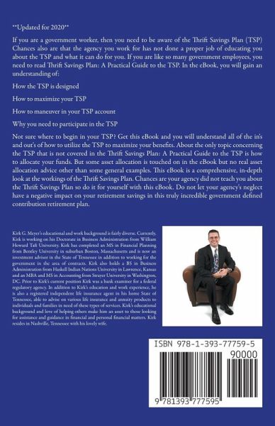 **Updated for 2020** If you are a government worker, then you need to be aware of the Thrift Savings Plan (TSP) Chances also are that the agency you work for has not done a proper job of educating you about the TSP and what it can do for you. If you are like so many government employees, you need to read Thrift Savings Plan: A Practical Guide to the TSP. In the eBook, you will gain an understanding of: How the TSP is designed How to maximize your TSP How to maneuver in your TSP account Why you need to participate in the TSP Not sure where to begin in your TSP? Get this eBook and you will…mehr