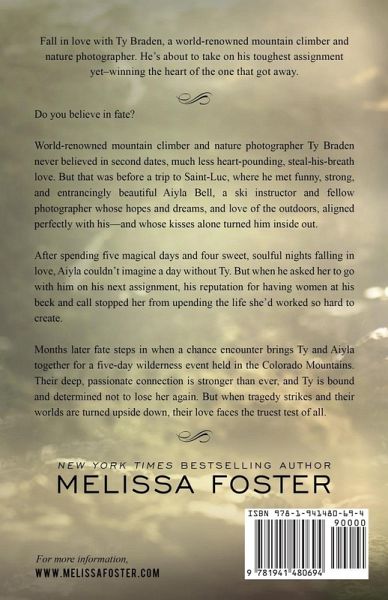 Discover the magic of New York Times bestseller Melissa Foster's writing, and see why millions of readers have fallen in love with the Bradens. In THRILL OF LOVE... Do you believe in fate? World-renowned mountain climber and nature photographer Ty Braden never believed in second dates, much less heart-pounding, steal-his-breath love. But that was before a trip to Saint-Luc, where he met funny, strong, and entrancingly beautiful Aiyla Bell, a ski instructor and fellow photographer whose hopes and dreams, and love of the outdoors, aligned perfectly with his--and whose kisses alone turned him inside out. After spending five magical days and four sweet, soulful nights falling in love, Aiyla couldn't imagine a day without Ty. But when he asked her to go with him on his next assignment, his reputation for having women at his beck and call stopped her from upending the life she'd worked so hard to create. Months later fate steps in when a chance encounter brings Ty and Aiyla together for a five-day wilderness event held in the Colorado Mountains. Their deep, passionate connection is stronger than ever, and Ty is bound and determined not to lose her again. But when tragedy strikes and their worlds are turned upside down, their love faces the truest test of all. ** WANT MORE BRADENS? All Braden books can be read as stand-alone novels or as part of the series: THE BRADENS (Peaceful Harbor, MD) Healed by Love (Nate) Surrender My Love (Cole) River of Love (Sam) Crushing on Love (Shannon) Whisper of Love (Tempest) Thrill of Love (Ty) *** The Bradens are a series of sexy stand-alone romances bursting with rich family ties and everlasting love. These hot contemporary love stories feature alpha male heroes and sexy, empowered women. They're flawed, funny, passionate, and relatable to readers who enjoy contemporary and new adult romance, and women's fiction.