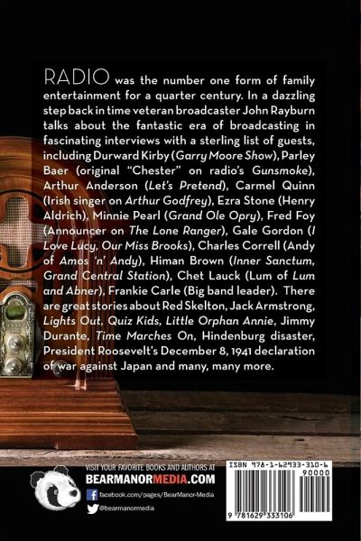 Radio was the number one form of family entertainment for a quarter century. In a dazzling step back in time veteran broadcaster John Rayburn talks about the fantastic era of broadcasting in fascinating interviews with a sterling list of guests, including Durward Kirby (Garry Moore Show), Parley Baer (original "Chester" on radio’s Gunsmoke), Arthur Anderson (Let’s Pretend), Carmel Quinn (Irish singer on Arthur Godfrey), Ezra Stone (Henry Aldrich), Minnie Pearl (Grand Ole Opry), Fred Foy (Announcer on The Lone Ranger), Gale Gordon (I Love Lucy, Our Miss Brooks), Charles Correll (Andy of Amos ‘n’ Andy), Himan Brown (Inner Sanctum, Grand Central Station), Chet Lauck (Lum of Lum and Abner), Frankie Carle (Big band leader). There are great stories about Red Skelton, Jack Armstrong, Lights Out, Quiz Kids, Little Orphan Annie, Jimmy Durante, Time Marches On, Hindenburg disaster, President Roosevelt’s December 8, 1941 declaration of war against Japan and many, many more.