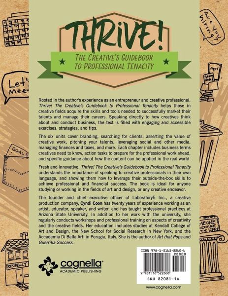 Rooted in the author's experience as an entrepreneur and creative professional, Thrive! The Creative's Guidebook to Professional Tenacity helps those in creative fields acquire the skills and tools needed to successfully market their talents and manage their careers. Speaking directly to how creatives think about and conduct business, the text is filled with engaging and accessible exercises, strategies, and tips. The six units cover branding, searching for clients, asserting the value of creative work, pitching your talents, leveraging social and other media, managing finances and taxes, and more. Each chapter includes business terms creatives need to know, action tasks to prepare for the professional work ahead, and specific guidance about how the content can be applied in the real world. Fresh and innovative, Thrive! The Creative's Guidebook to Professional Tenacity understands the importance of speaking to creative professionals in their own language, and showing them how to leverage their outside-the-box skills to achieve professional and financial success. The book is ideal for anyone studying or working in the fields of art and design, or any creative endeavor. The founder and chief executive officer of Laboratory5 Inc., a creative production company, Cyndi Coon has twenty years of experience working as an artist, educator, speaker, and writer, and has taught professional practices at Arizona State University. In addition to her work with the university, she regularly conducts workshops and professional training on aspects of creativity and the creative fields. Her education includes studies at Kendall College of Art and Design, the New School for Social Research in New York, and the Accademia Di Bella Arti in Perugia, Italy. She is the author of Art that Pops and Guerrilla Success.