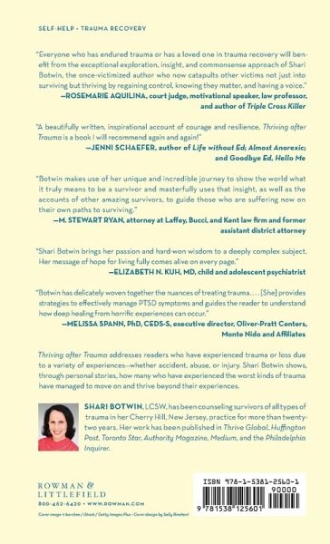 Thriving After Trauma addresses readers who have experience trauma or loss due to a variety of experience - whether accident, abuse, or injury. Shari Botwin shows readers, through personal stories, how many who have experienced the worst kinds of trauma have managed to move on and thrive beyond their experiences. Often, those who live through trauma come away with feelings of shame, guilt, anger, and despair. These are common, even normal, responses in the immediate aftermath. Left unaddressed, though, those feelings may develop into substance abuse problems, eating disorders, depression, or anxiety. Learning how to move on, to pick up and live life again, takes effort and guidance. Botwin guides readers through the stories of others who have gone on to live fulfilling, happy lives, and provides tips and tools for healing and moving on. Letting go of the shame, guilt, anger and fear associated with tragic events is crucial to reclaiming a full life. Strategies such as, journaling, mindfulness, cognitive-behavioral restructuring, and healthy relationships to aid in recovery are explored and explained, so readers can adopt those strategies that work best for them. It is not the trauma itself that results in so many people developing self-destructive tendencies and life threatening illnesses. It is the lack of having a way to digest and make sense of the trauma-related feelings that can lead one to mental illness, disconnection, and in some cases, even death. Readers will learn how to live with the trauma versus how to get over the trauma, so they can move forward healthfully and mindfully.