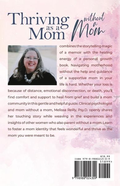 Thriving As A Mom Without A Mom combines the storytelling magic of a memoir with the healing energy of a personal growth book. Navigating motherhood without the help and guidance of a supportive mom in your life is hard. Whether your loss is because of distance, emotional disconnection, or death, you'll find comfort and support to heal from grief and build a mom community in this gentle and helpful guide. Clinical psychologist and mom without a mom, Melissa Reilly, Psy.D. openly shares her touching story while weaving in the experiences and insights of other women who also parent without a mom. Learn to foster a mom identity that feels wonderful and thrive as the mom you were meant to be.