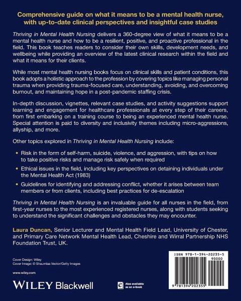 Comprehensive guide on what it means to be a mental health nurse, with up-to-date clinical perspectives and insightful case studies Thriving in Mental Health Nursing delivers a 360-degree view of what it means to be a mental health nurse and how to be a resilient, positive, and proactive professional in the field. This book teaches readers to consider their own skills, development needs, and wellbeing while providing an overview of the latest clinical research within the field and what it means for their clients. While most mental health nursing books focus on clinical skills and patient conditions, this book adopts a holistic approach to the profession by covering topics like managing personal trauma when providing trauma-focused care, understanding, avoiding, and overcoming burnout, and maintaining hope in a post-pandemic staffing crisis. In-depth discussion, vignettes, relevant case studies, and activity suggestions support learning and engagement for healthcare professionals at every step of their careers, from first embarking on a training course to being an experienced mental health nurse. Special attention is paid to diversity and inclusivity themes including micro-aggressions, allyship, and more. Other topics explored in Thriving in Mental Health Nursing include: * Risk in the form of self-harm, suicide, violence, and aggression, with tips on how to take positive risks and manage risk safely when required * Ethical issues in the field, including key perspectives on detaining individuals under the Mental Health Act (1983) * Guidelines for identifying and addressing conflict, whether it arises between team members or from clients, including best practices for de-escalation Thriving in Mental Health Nursing is an invaluable guide for all nurses in the field, from first-year nurses to the most experienced registered nurses, along with students seeking to understand the significant challenges and obstacles they may encounter.