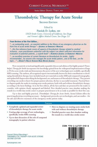It often takes time for a new therapeutic modality to mature into an accepted treatment option. After initial approval, new drugs, devices, and procedures all go through this process until they become "vetted" by the scientific community as well as the medical community at large. Thrombolysis for treatment of stroke is no exception. Thrombolytic Therapy for Acute Stroke, Second Edition comes four years after the first edition and provides a very comprehensive, updated perspective on the use of intravenous rt-TPA in acute stroke. The authors provide longer term follow-up on the pivotal clinical trials that led to Food and Drug Administration approval, data concerning phase 4 trials in larger numbers of patients, and, most importantly, the community experience that has accumulated since its release. They add to this the latest promising information concerning intra-arterial thrombolysis, which is still under investigation and more speculative sections concerning possible new avenues of clinical research such as combining intravenous thr- bolysis with neuroprotective therapies or intra-arterial thrombolysis. A wealth of factual information is supplemented by chapters containing sage opinion from Drs. Lyden and Caplan concerning the logistical, economic, and procedural issues that have been generated since the advent of this technology. Importantly, diagnosis does not take a back seat to therapeutics as illustrated by sections devoted to eva- ation of the stroke patient, very useful illustrative cases and clinical comments, and chapters on the latest in imaging as applied to this field.