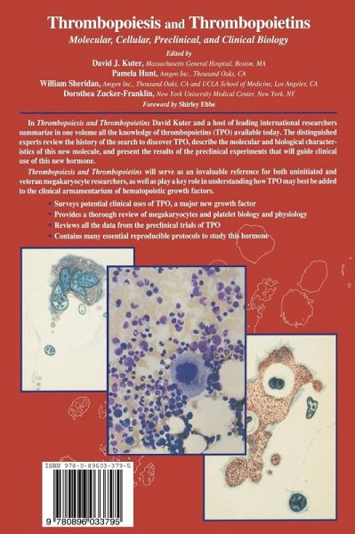 David Kuter and a host of leading international researchers summarize in one volume all the knowledge of thrombopoietins (TPO) available today. The distinguished experts review the history of the search to discover TPO, describe the molecular and biological characteristics of this new molecule, and present the results of the preclinical animal experiments that will guide clinical use of this new hormone. Along the way they provide the most recent and comprehensive guide to the biology of megakaryocytes and platelets.