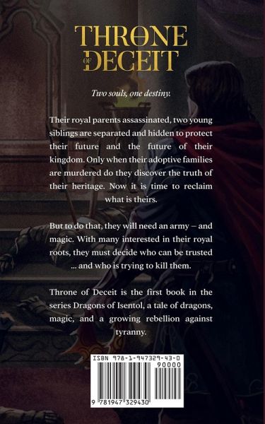Two souls, one destiny. Their royal parents assassinated, two young siblings are separated and hidden to protect their future and the future of their kingdom. Only when their adoptive families are murdered do they discover the truth of their heritage. Now it is time to reclaim what is theirs. But to do that, they will need an army - and magic. With many interested in their royal roots, they must decide who can be trusted ... and who is trying to kill them. ¿Throne of Deceit is the first book in the series Dragons of Isentol, a tale of dragons, magic, and a growing rebellion against tyranny.