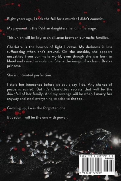 Eight years ago, I took for the fall for a murder I didn't commit. My payment is the Pakhan daughter's hand in marriage. This union will be key to an alliance between our mafia families. Charlotte is the beacon of light I crave. My darkness is less suffocating when she's around. On the outside, she appears unscathed from our mafia world, even though she was born in blood and raised in violence. She is the image of a classic Bratva princess. She is untainted perfection. I stole her innocence before we could say I do. Any chance of peace is ruined. But it's Charlotte's secrets that will be the downfall of her family. And my revenge will be when I marry her anyway and steal everything to raise to the top. Growing up, I was the forgotten one. But soon I will be the one with power.