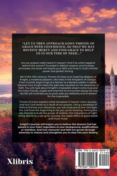 "LET US THEN APPROACH GOD'S THRONE OF GRACE WITH CONFIDENCE, SO THAT WE MAY RECEIVE MERCY AND FIND GRACE TO HELP US IN OUR TIME OF NEED..." Are our prayers really heard in heaven? And if so what happens behind the scenes? Founded in biblical wisdom and timeless principles, this book will inspire your faith and trust in God's infinite power and perfect timing. Set in the 14th century, Throne of Grace is an inspiring allegory of Knight, a medieval peasant, who lives in the Kingdom of Georgia. From humble beginnings as a farmer to a fearless soldier in battle, discover how Knight takes the path less travelled on his adventure of faith. You will read about Knight's impossible dream come true and the many friends, angels and enemies he encounters along the way. His life will motivate you to push past any setbacks and to believe for the impossible. Throne of Grace explains what transpires in heaven when we pray and how God works as a result of our prayers. Using a backdrop of biblical themes and references, you will understand how God sees the end from the beginning to set you up for blessing. Among the key themes include the power of wisdom, the importance of right living, failure as a set up for success, the ripple effect of good deeds and much more. Knight's journey will inspire you to believe the dreams God has placed in your heart regardless of your background, qualifications or mistakes. And how character and faith are grown through adversity to mature and strengthen you to step into your destiny.