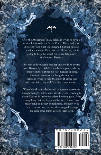 After the Atonement Trials, Selena is trying to navigate her new life outside the Seelie Court. The world is very different from what she imagined, but her mission remains the same. Using every skill she has, she is going to help the secret resistance take down the Iceheart Dynasty. But that path yet again sets her on a collision course with Draven Ryat. While the rebellion plots a daring scheme, important people start turning up dead. Draven is tasked with solving the murders. Selena is trying to help the killer. If either one of them fails, they will face dire consequences. When blood stains the ice and dangerous secrets are brought to light, Selena must decide if she is willing to doom Draven in order to achieve her own goals. After everything that has happened between them, their relationship is already complicated. But now, with their very lives on the line, their tangled feelings for each other might destroy them both.