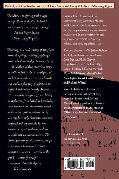 These thirteen original essays are provocative explorations in the construction and representation of self in America's colonial and early republican eras. Highlighting the increasing importance of interdisciplinary research for the field of early American history, these leading scholars in the field extend their reach to literary criticism, anthropology, psychology, and material culture. The collection is organized into three parts - Histories of Self, Texts of Self, and Reflections on Defining Self. Individual essays examine the significance of dreams, diaries, and carved chests, murder and suicide, Indian kinship, and the experiences of African American sailors. Gathered in celebration of the Institute of Early American History and Culture's fiftieth anniversary, these imaginative inquiries will stimulate critical thinking and open new avenues of investigation on the forging of self-identity in early America. The contributors are W. Jeffrey Bolster, T. H. Breen, Elaine Forman Crane, Greg Dening, Philip Greven, Rhys Isaac, Kenneth A. Lockridge, James H. Merrell, Donna Merwick, Mary Beth Norton, Mechal Sobel, Alan Taylor, Laurel Thatcher Ulrich, and Richard White.