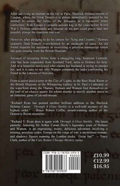 After surviving an attempt on his life in Paris, Sherlock Holmes returns to London, where the Great Detective is almost immediately enlisted by his brother to secure the safety of the delegates at a top-secret peace conference. With Europe a veritable powder keg in the years before World War I, Holmes understands any misstep on his part could prove fatal and possibly plunge the continent into war. However, after pledging to do his utmost for "King and Country," Holmes suddenly finds himself overwhelmed by an onslaught of cases. An old friend requests his assistance in recovering a priceless manuscript which has gone missing from the British Museum. Accused of accepting bribes from a smuggling ring, Inspector Lestrade, who has been suspended from Scotland Yard, turns to Holmes for help. Add in a beautiful newlywed who claims her husband is trying to murder her, and it is easy to see why Watson compares the tasks confronting his friend to the Labours of Hercules. From a secret pied-à-terre in the City of Lights, to the Rare Book Room in the British Museum, to the Whispering Gallery in St. Paul’s Cathedral, to the waterfront along the Thames, Holmes and Watson find themselves on the trail of an elusive quarry for whom murder is merely another move in an elaborate game of cat-and-mouse.