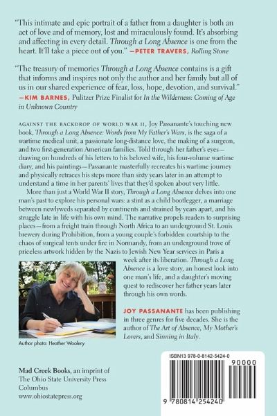 A 2017 Foreword INDIES Book of the Year Silver Winner for Biography Against the backdrop of World War II, Joy Passanante's touching new book, Through a Long Absence: Words from My Father's Wars, is the saga of a wartime medical unit, a passionate long-distance love, the making of a surgeon, and two first-generation American families. Told through her father's eyes-drawing on hundreds of his letters to his beloved wife, his four-volume wartime diary, and his paintings-Passanante masterfully recreates his wartime journey and physically retraces his steps more than sixty years later in an attempt to understand a time in her parents' lives that they'd spoken about very little. More than just a World War II story, Through a Long Absence delves into one man's past to explore his personal wars: a stint as a child bootlegger, a marriage between newlyweds separated by continents and strained by years apart, and his struggle late in life with his own mind. The narrative propels readers to surprising places-from a freight train through North Africa to an underground St. Louis distillery during Prohibition, from a young couple's forbidden courtship to the chaos of surgical tents under fire in Normandy, from an underground trove of priceless artwork hidden by the Nazis to Jewish New Year services in Paris a week after its liberation. Through a Long Absence is a love story, an honest look into one man's life, and a daughter's moving quest to rediscover her father years later through his own words.