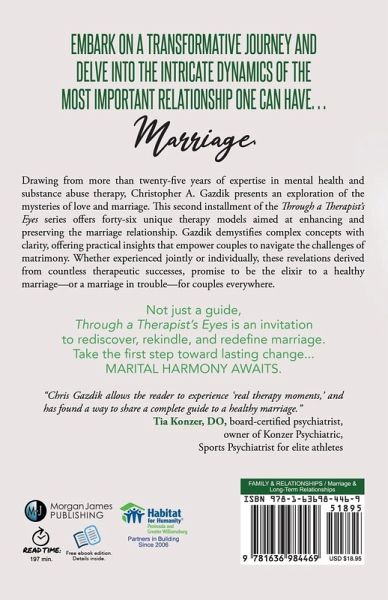 The second installment of Through a Therapist's Eyes helps couples unlock the secrets to building a stronger, more vibrant marriage.Written by Christopher A. Gazdik, LCSW, Through a Therapist's Eyes: Reunderstanding Your Marriage and Becoming Your Best as a Spouse delves into the universal concept of marriage, exploring its diverse beginnings, whether through arranged unions or serendipitous love stories. Addressing the common challenge of keeping the connection alive, a struggle many individuals face, this resource offers a distinctive approach by immersing individuals in the raw and insightful world of real-life therapy sessions.Offering a front-row seat in a therapist's office, where genuine people endeavor to enhance their marriages or salvage them from distress, this thoughtful exploration delivers pragmatic, down-to-earth steps derived from these authentic therapy sessions. It serves as a guide, offering practical insights and actionable advice to empower people on their journey to becoming the best possible partners for their spouses.Through a Therapist’s Eyes guides individuals in rekindling love and fortifying the connection within their relationships through firsthand glimpses into therapy sessions, providing them with tools to navigate the complexities of marriage and emerge as better, more connected spouses.