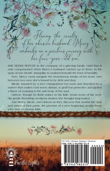 Fleeing the cruelty of her abusive husband, Mercy embarks on a perilous journey with her four-year-old son, seeking refuge in the company of a grieving family. Grief that is only compounded when Mercy's husband catches up to them. In the span of one moment, tranquility is crushed beneath the boot of brutality. Now, Mercy must navigate the treacherous terrain of her heart, torn between two men she's bound to by debt and duty. Micah, haunted by a love extinguished too soon and shackled by a sorrow that makes God seem distant, is gruff but protective and ignites a flame of yearning in the ash heap of her soul. Gideon, though he finds solace in his faith, bears scars of his own. His gentle friendship awakens desires she thought long buried. Join Mercy, Micah, and Gideon as they discover that amidst the dust and ashes of their pasts, the promise of a new beginning awaits those who dare to choose faith.