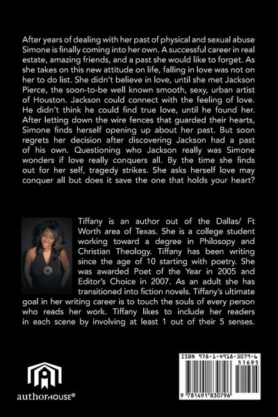 After years of dealing with her past of physical and sexual abuse Simone is finally coming into her own. A successful career in real estate, amazing friends, and a past she would like to forget. As she takes on this new attitude on life, falling in love was not on her to do list. She didn't believe in love, until she met Jackson Pierce, the soon-to-be well known smooth, sexy, urban artist of Houston. Jackson could connect with the feeling of love. He didn't think he could find true love, until he found her. After letting down the wire fences that guarded their hearts, Simone finds herself opening up about her past. But soon regrets her decision after discovering Jackson had a past of his own. Questioning who Jackson really was Simone wonders if love really conquers all. By the time she finds out for her self, tragedy strikes. She asks herself love may conquer all but does it save the one that holds your heart?